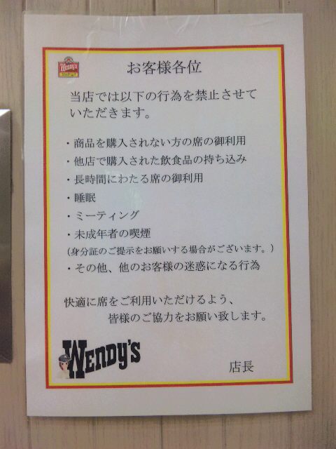 話は変わるが 昨日ウエンディーズの店内で貼紙を見付けた